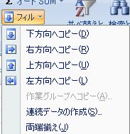 Excel2007では[ホーム]タブの[編集]グループの[フィル]で選択できます。