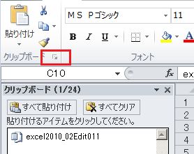 ・[Officeクリップボート]はExcel2010では[ホーム]タブの[クリップボード]グループの[ダイアログボックス]で選択します