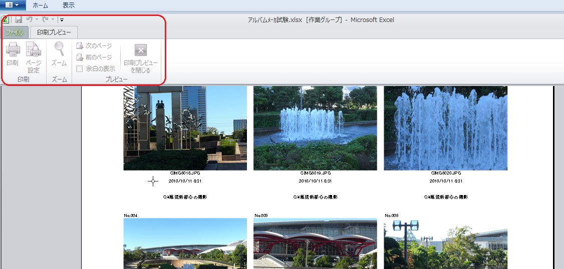Excelのマクロで複数シートを纏めてプレビューする機能を作成したのですが、Excel2003では問題なくプレビュー機能を使用できるのですが、Excel2010では使用不可になってしまって困ります。