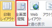 ・[全面表示]、[ズーム]はWord2010では[表示]タブの[文書表示]又は[ズーム]グループの[全画面閲覧]又は[ズーム]で選択します。