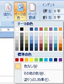 Word2007では[ページレイアウト]タブの[ページの背景]グループの各ツールで選択します。
