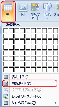 Word2007では[挿入]タブの[表]グループの[罫線を引く]で選択します。